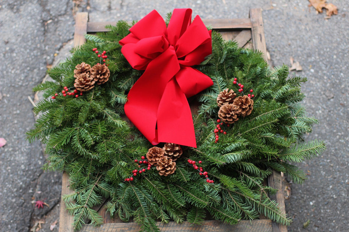 Design your own holiday wreath! We start you off with a traditional 20" Balsam wreath base, and let you decide the rest. You can customize your wreath by choosing between a festive selection of berries, pinecones, and ribbon!