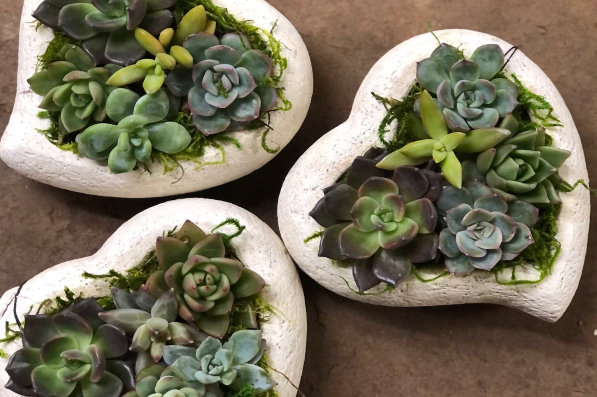 Send your Valentine this heart-shaped planter filled with a variety of succulents.