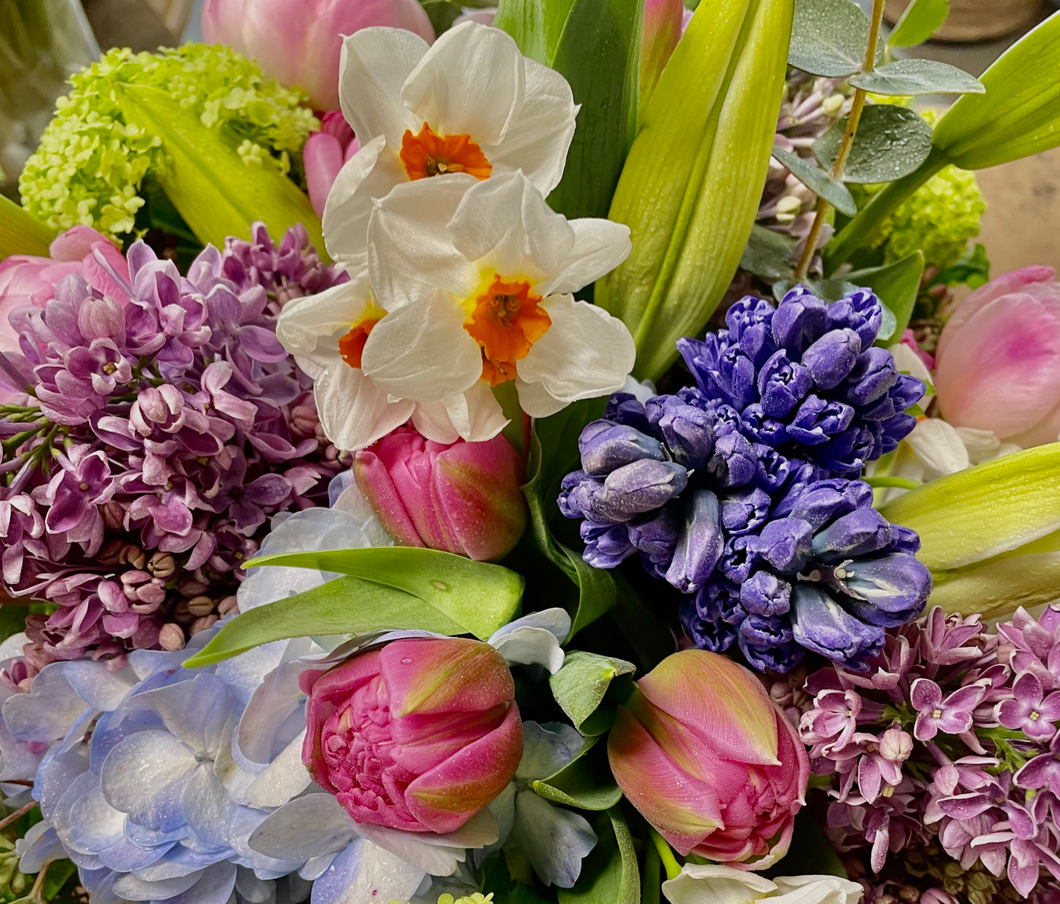 This picture is a sample of the variety of flowers included in the Easter Special: Spring Flowers, and it does not necessarily reflect the quantity of flowers. Please choose a price point below, and we will fill the order to value.